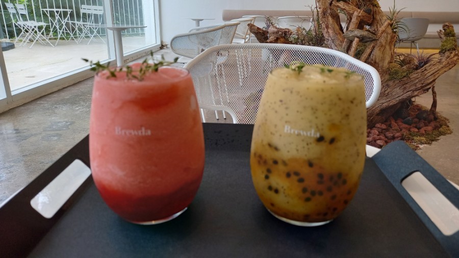 딸기 스무디, 패션프릇 스무디를 시켰다.