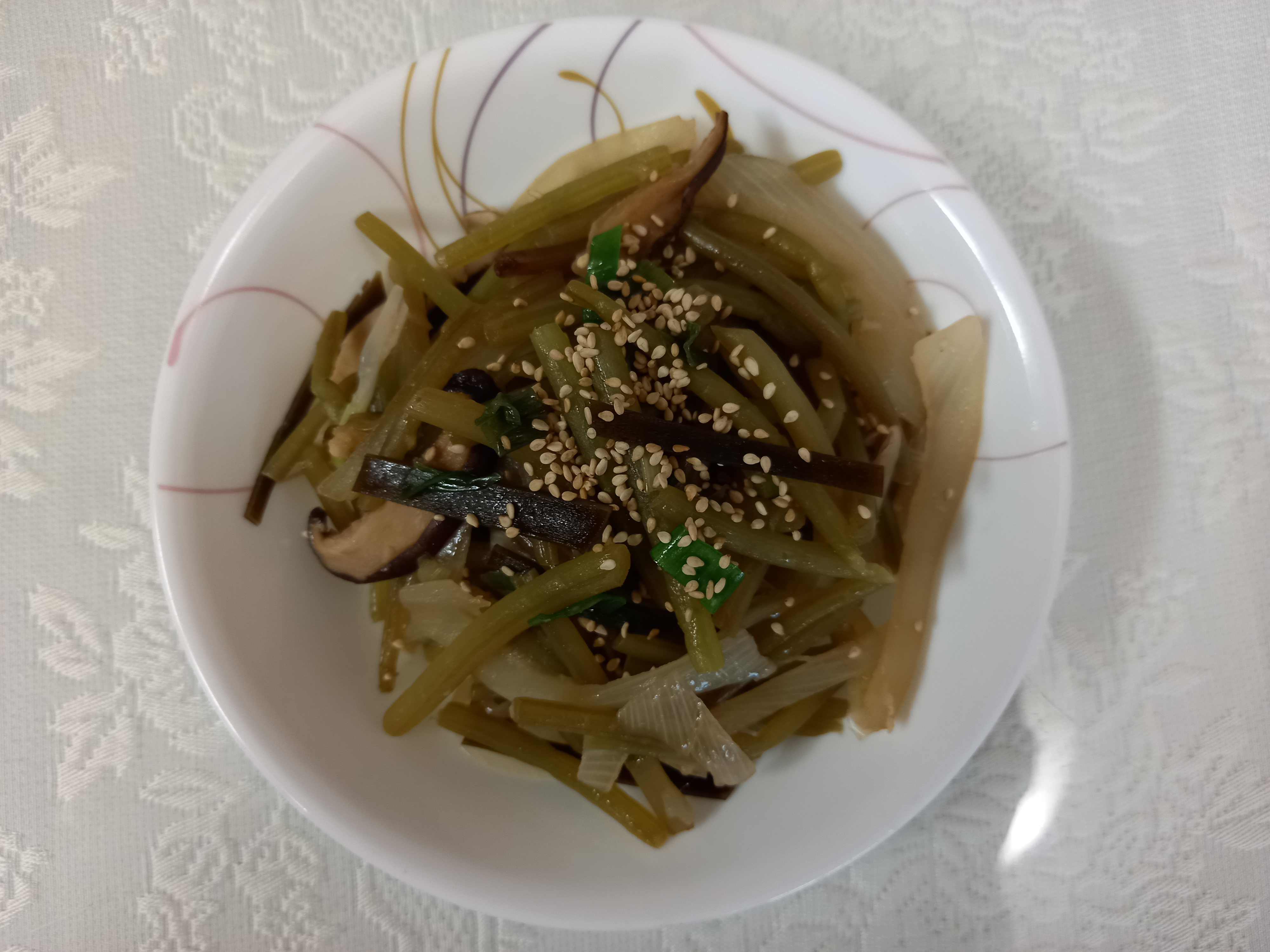 하얀 쌀밥에 고구마 순 나물