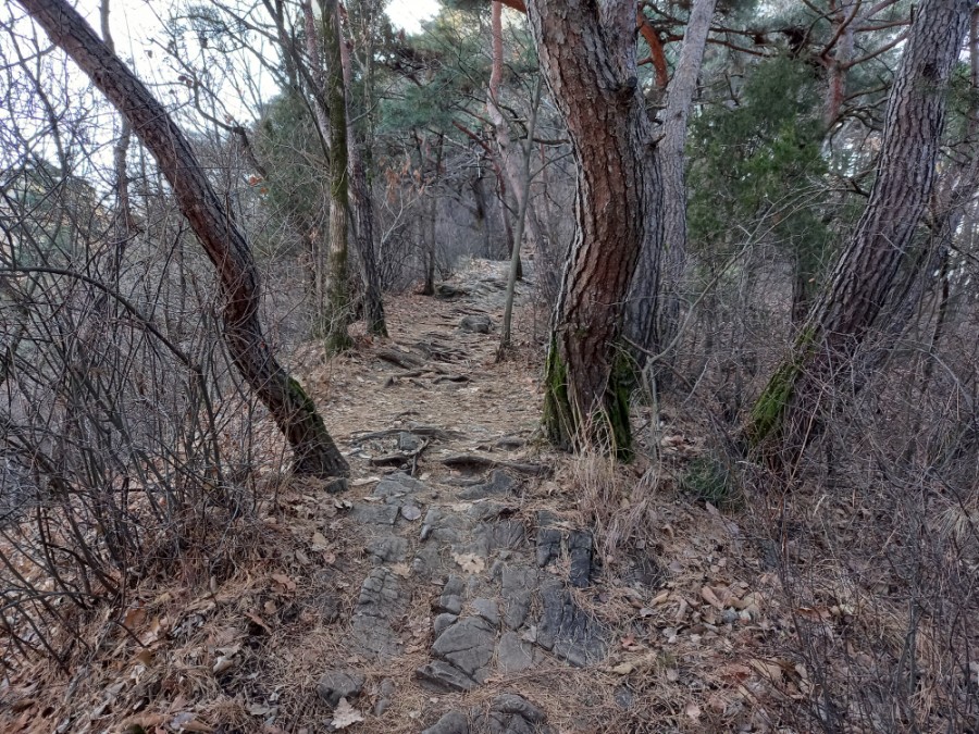 오래된 소나무길을 지나서 산을 내려간다.