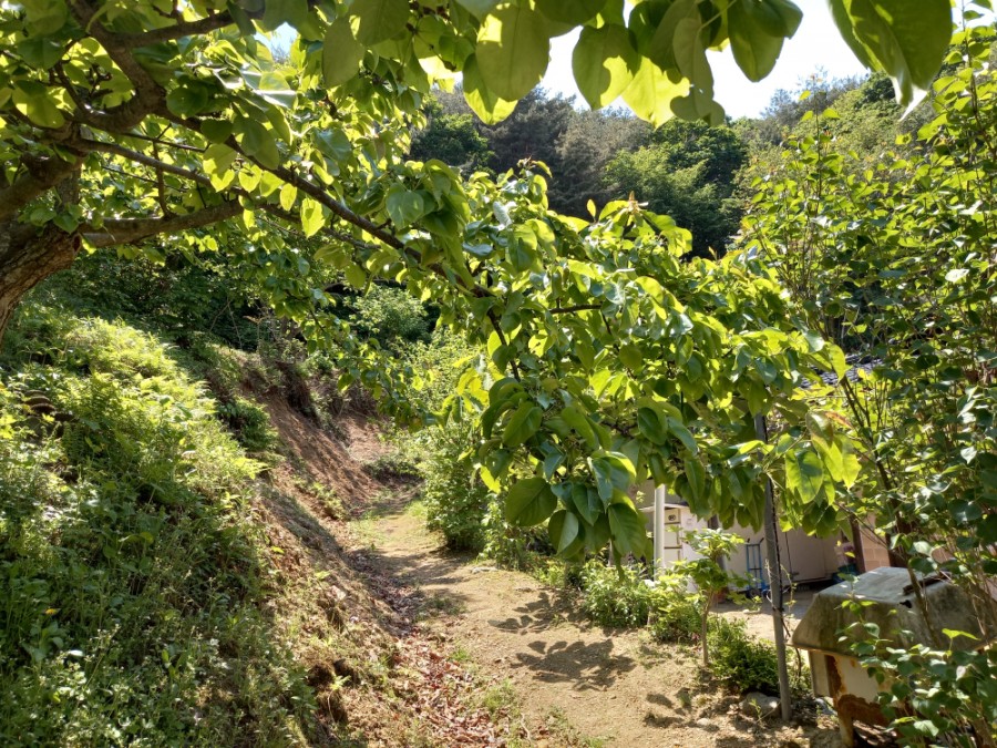 식당 마당에서 마을이 보인다.