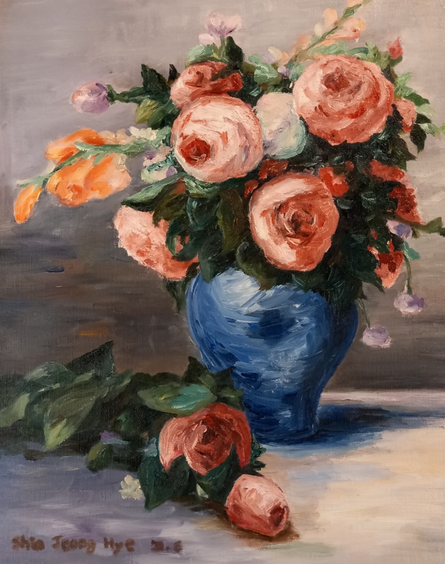 그림 / 신 정 혜 <푸른화병의 장미>