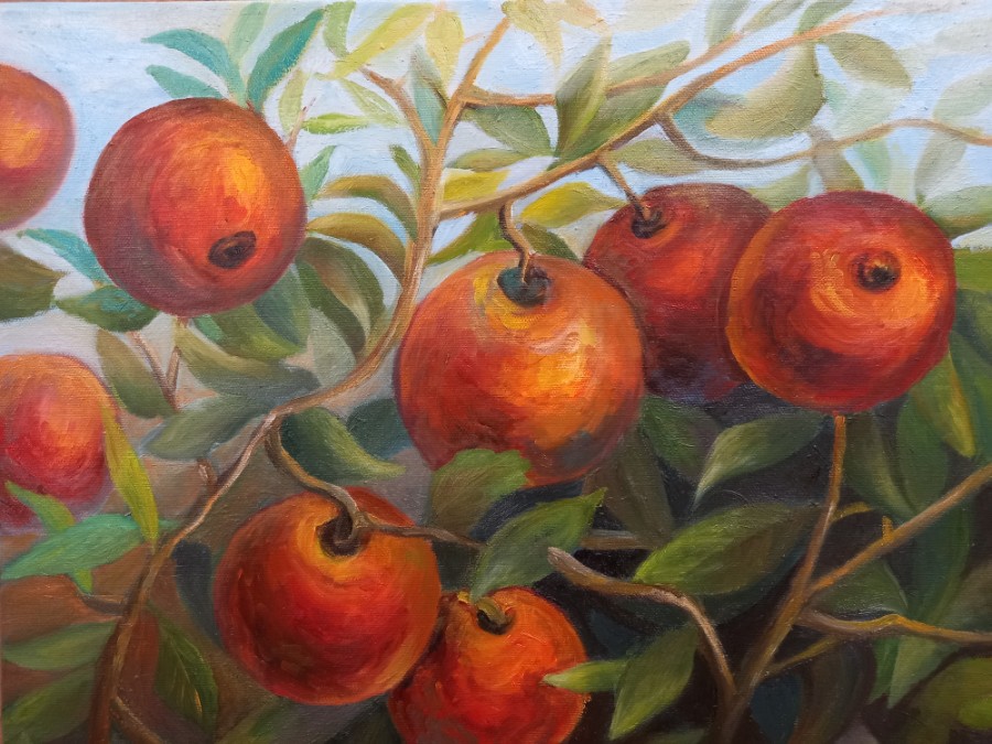 코로나로 힘든 시간에 유화로 사과를 그려보기로 했다. 그림에 소질도 없는 내가 겁도 없이 사과를 그리기 시작했다. 한 달도 더 넘게 3~4번은 칠한 것 같다. 어디가 잘못된지도 모르면서..... 칠하고 또 칠했다. 조금 탁한 느낌도 든다. 오늘은 용기를 내서 끝을 내야겠다고 결정을 했다. 더 잡고 있는다고 그림이 좋아질 것 같지도 않았다. 사과를 그리면서 느낀 점은 사과 속에 빨강, 주황, 노랑. 초록, 검정, 흰색....... 다양한 색이 들어갔다. 나는 사과가 빨간색인 줄 알았다. 우리네 인생도 빨간색처럼 혼자 독불장군으로 살 수 없다는 생각을 했다. 무지개 색깔을 사과 속에 모두 넣은 것처럼 우리는 다양한 사람들과 어울려 살아야 사과처럼 달콤한 맛이 나는 인생을 살 수 있구나 하는 큰 교훈을 얻었다..